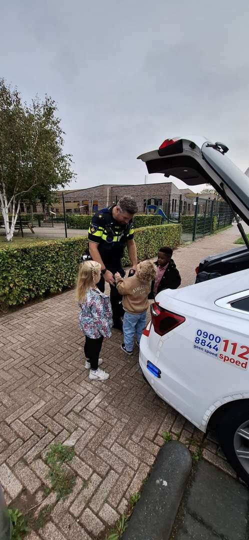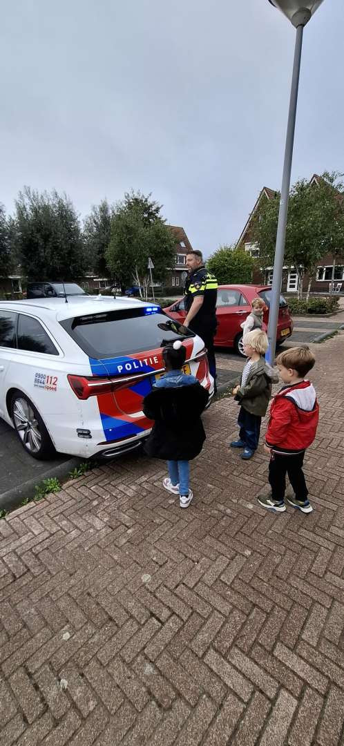 In groep 1/2 werken we met het thema 'Politie en Boef'. Vandaag kwam er een echte politieagent op school langs. De kinderen hebben de auto mogen bekijken en de uitrusting van de agent mogen zien.