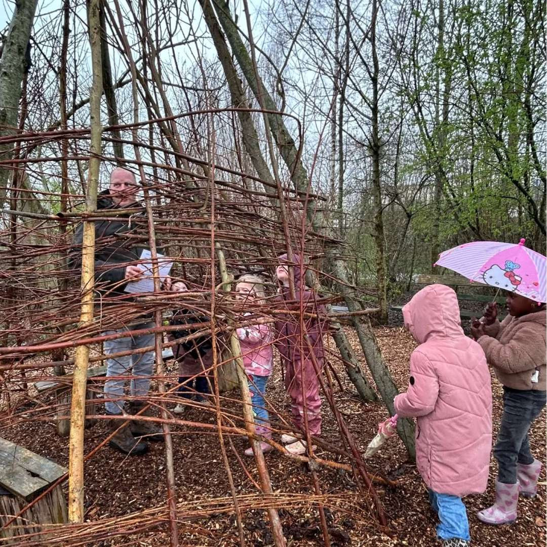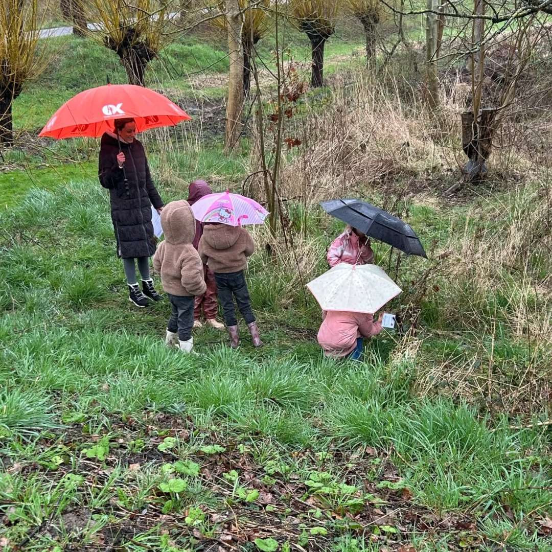 Hoewel het weer niet echt meewerkte, hebben de leerlingen van groep 1/2 een leuke en leerzame ochtend gehad tijdens het natuurpad van Hoeksche Waardse Landschappen in Numansdorp.